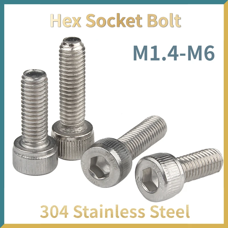 10-100 шт. M1.4 M1.6 M2 M3 M4 M5 M6 304 A2-70 Нержавеющая сталь DIN912 Болт с шестигранной головкой и шестигранной головкой Длина винта 2-50 мм