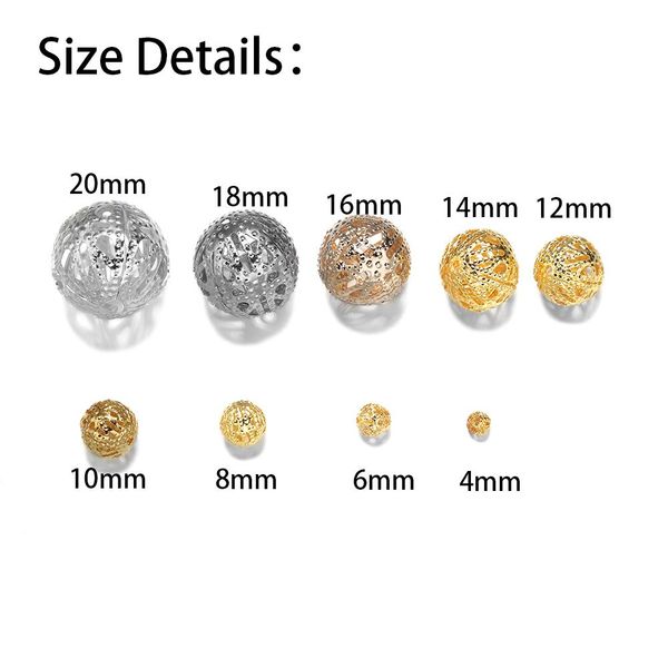 10-200 шт. / лот 4-20 мм золотой металл круглый семеной разум шарики филигранная полая бусина для diy браслет ожерелье ювелирные изделия уда