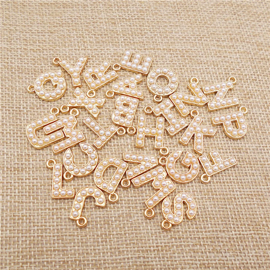 10/26 шт. Английский Алфавит Брелок С Пластиковой Жемчужиной Сплав Золото Цвет Письмо Кулон Ожерелье Браслет Ювелирные Изделия Аксессуар
