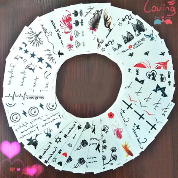 10/50 штук временные наклейки для временных татуировок черного цвета, переводятся с помощью воды, татуировки наклейки для боди-арта с имитаци...