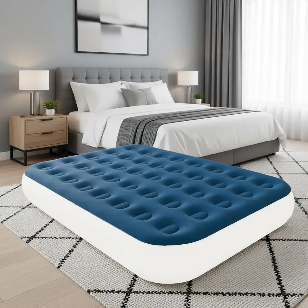 10 Inch Inflatable Air Mattress with Built-In Pump, Quick Setup, Portable for Home and Travel, Blue