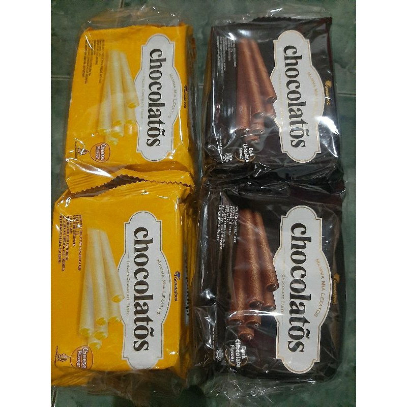 10 PCS Chocolatos Wafer Roll. Rasa Coklat 27gram dan Rasa Keju 24gram.