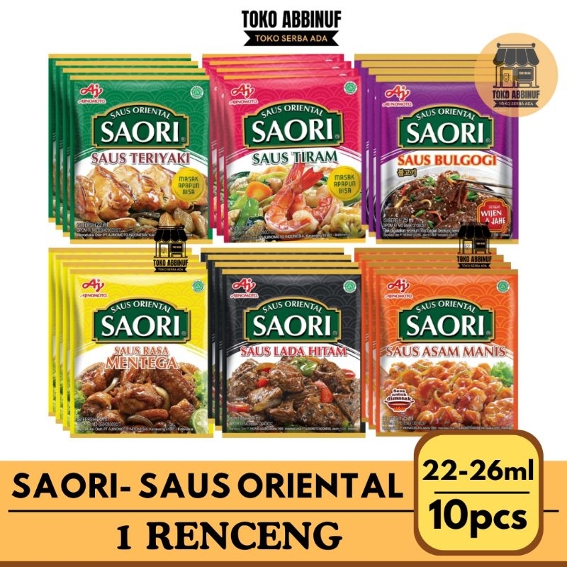HARGA TERTERA : 1 RENCENG / 10 PCS - SAORI SAUS ORIENTAL ECER - SAORI SAUS TIRAM, SAUS TERIYAKI, SAUS LADA HITAM, SAUS ASAM MANIS, SAUS MENTEGA , SAUS BULGOGI