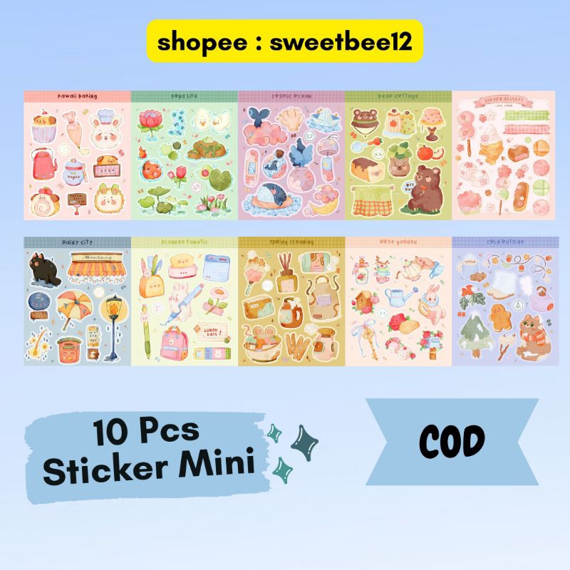 10 Pcs Sticker Sheet Sticker Pack Lucu