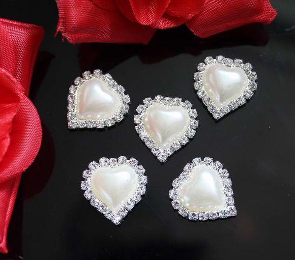 100шт 22x21mm сердце горный хрусталь жемчужина кнопки Flatback свадебные украшения волос