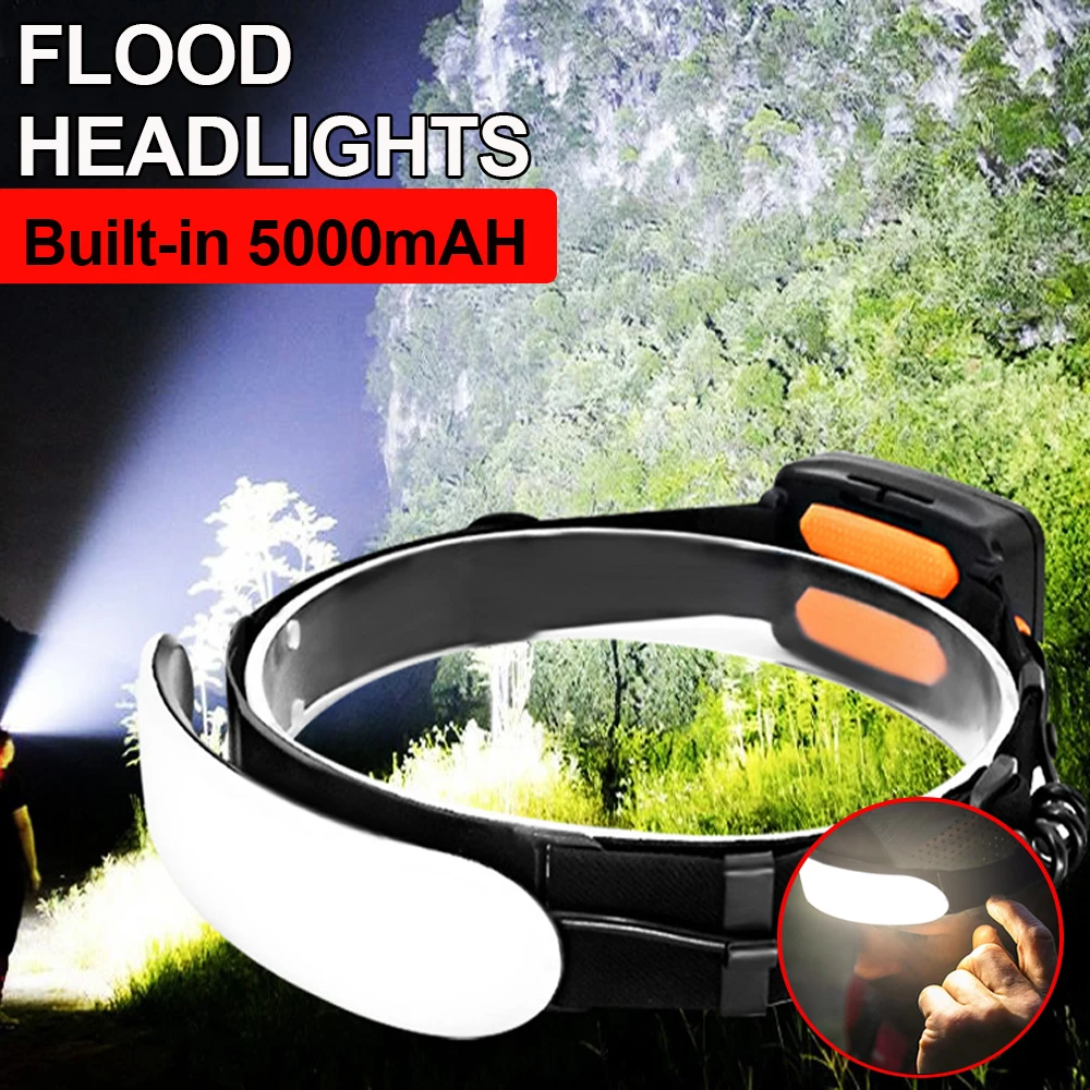 100 Вт Ультра широкоугольная лампа-налобный фонарь со встроенной батареей 5000 мАч, фонарик с USB-зарядкой