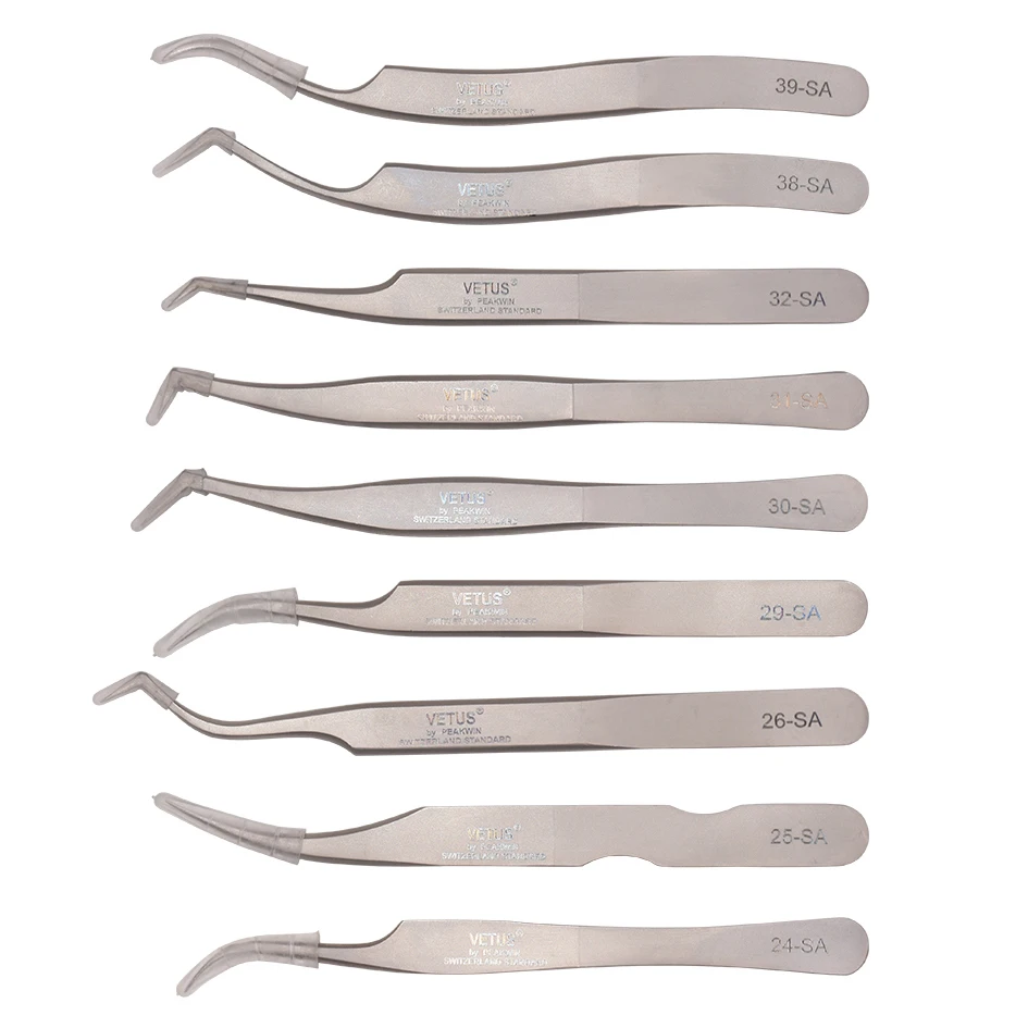 100% Оригинальные фотополиуретановые пинцеты для ресниц из нержавеющей стали для макияжа пинцеты «VETUS» 24-SA 25-SA 26-SA 29-SA 30-SA 31-SA 32-SA 38-SA 39-SA