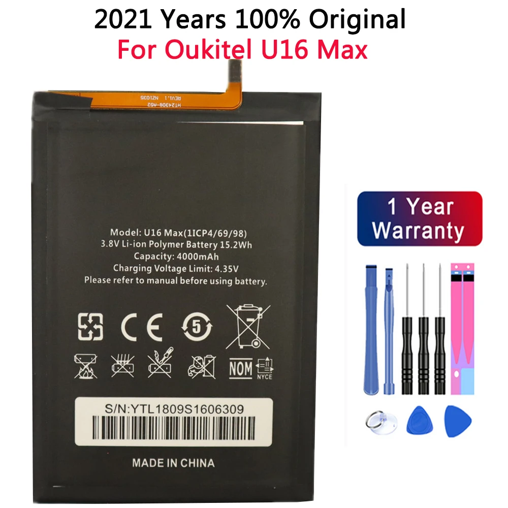 100% Оригинальный аккумулятор большой емкости Oukitel U16 Max 4000 мАч Замена батареи для смартфона Oukitel U16 Max + Подарочные инструменты