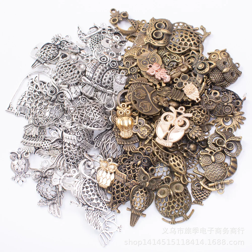 100 г/лот Смешанные Подвески в виде животных серебряного цвета Подвески в виде совы из сплава для самостоятельного изготовления браслетов ож...