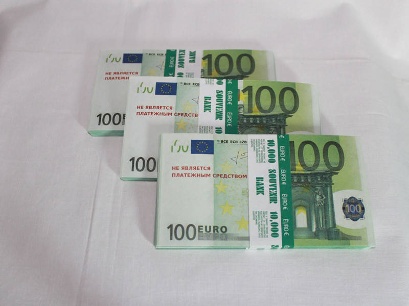 Сувенирные деньги пачка 100 Евро — отличный подарок другу или сотруднику. Конечно, подарочными купюрами. Сувенирная пачка 100 евро денег выглядят очень реалистично, в пачке 75-80 кюпюр.