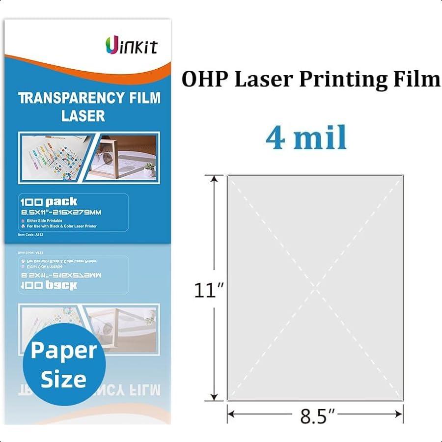 100 листов Лазерная прозрачная пленка 8,5x11 Цветная прозрачная бумага OHP Прозрачная пленка для проектора 8,5x11 для лазерной печати United States