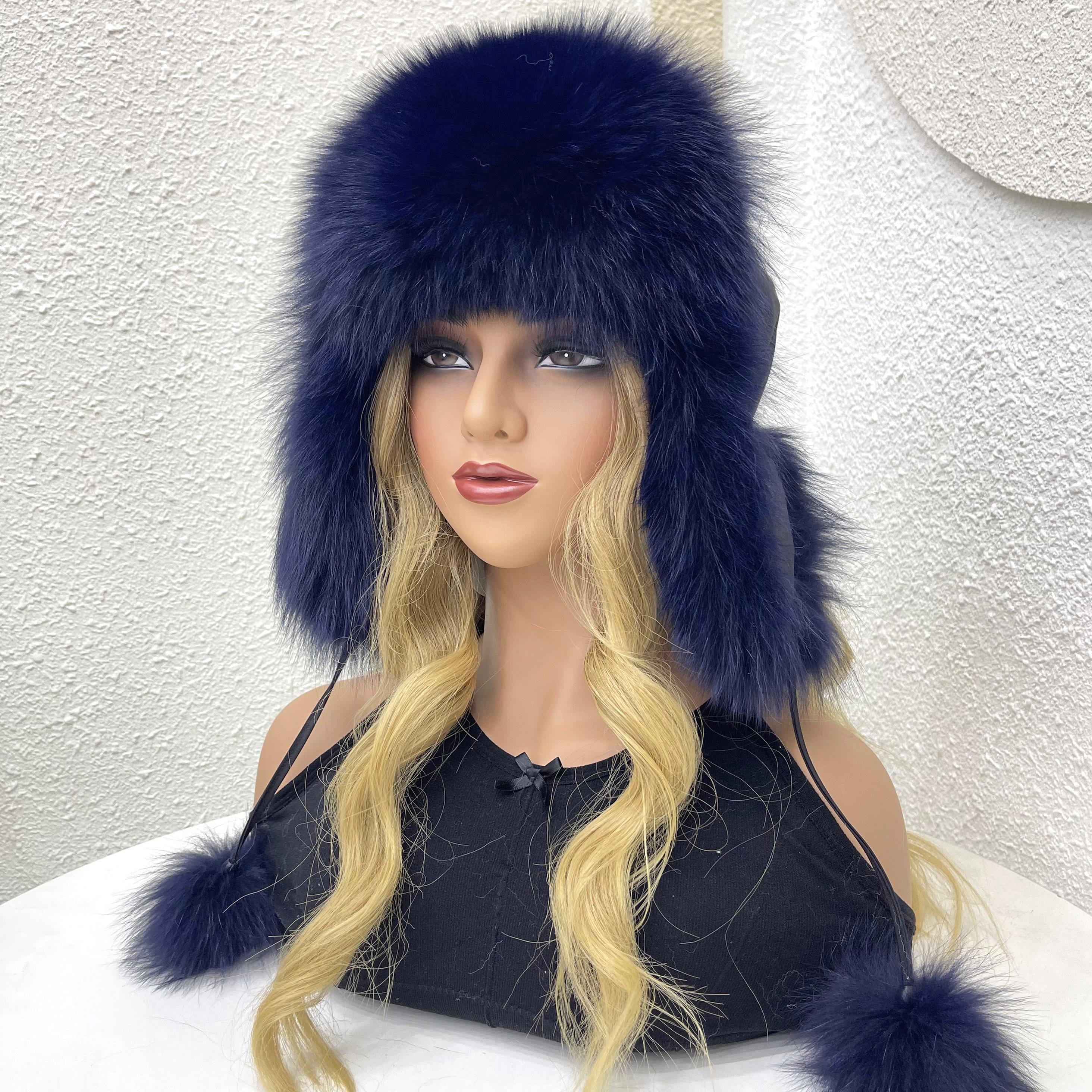 100% натуральная меховая шапка из лисы, женская шапка, толстая меховая шапка, зимняя теплая шапка, женская модная шапка с ушами One Size