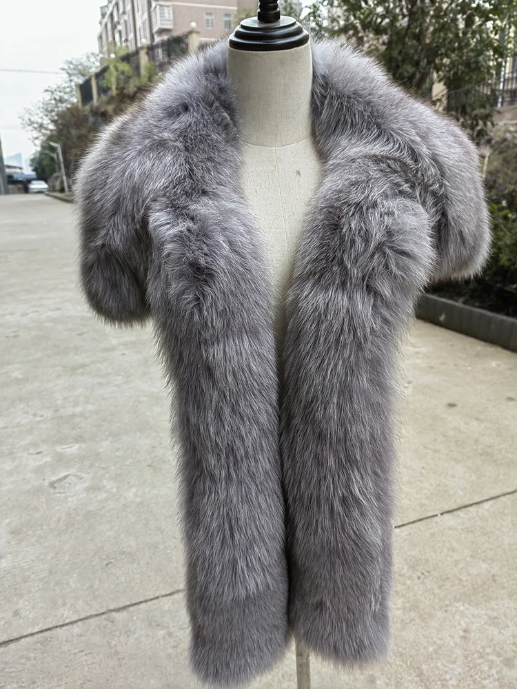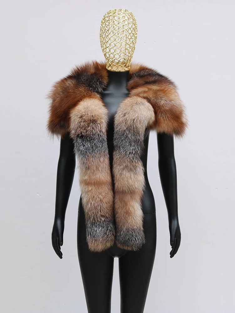 100% натуральный мех лисы воротник с капюшоном, съемный теплый большой меховой воротник