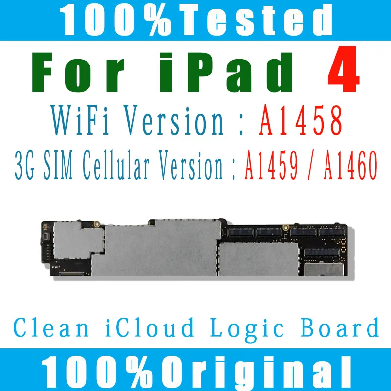 100% оригинальная материнская плата A1458 Wi-Fi версии A1459 A1460 3G сотовая чистая iCloud для замены материнской платы IPad 4