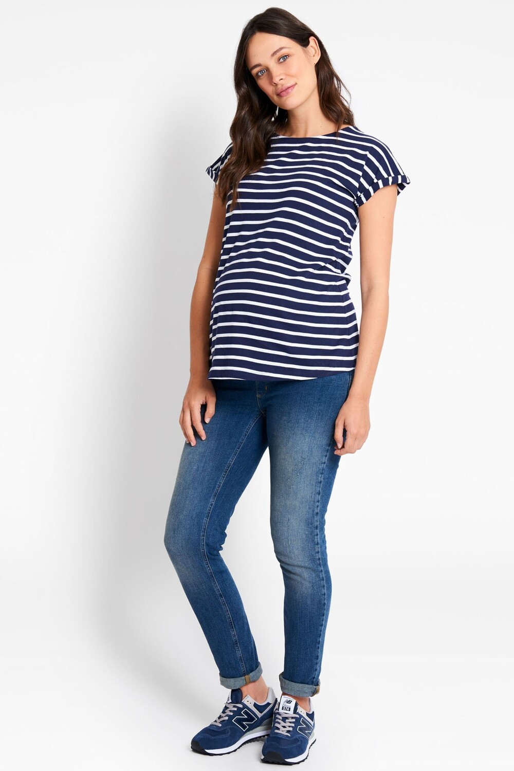 Темно-сине-белая полосатая футболка для беременных JoJo Maman Bébé в стиле бойфренда Jojo Maman Bébé, белый