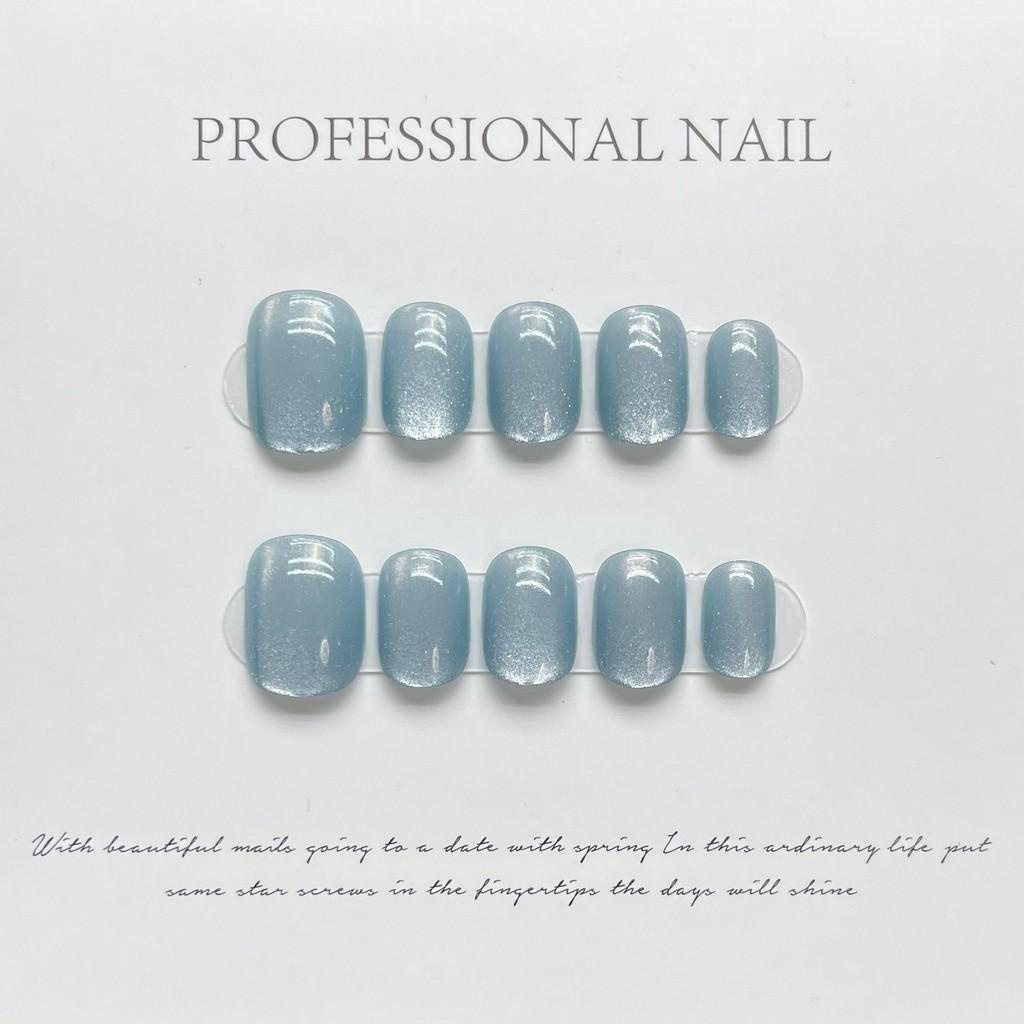 100% ручная работа, короткие круглые накладные ногти с клеем, звезда, мороженое, синий и желтый, милый, нежный, летний, весенний, морской, океан, алмазный пресс на ногтях, многоразовый 431-M