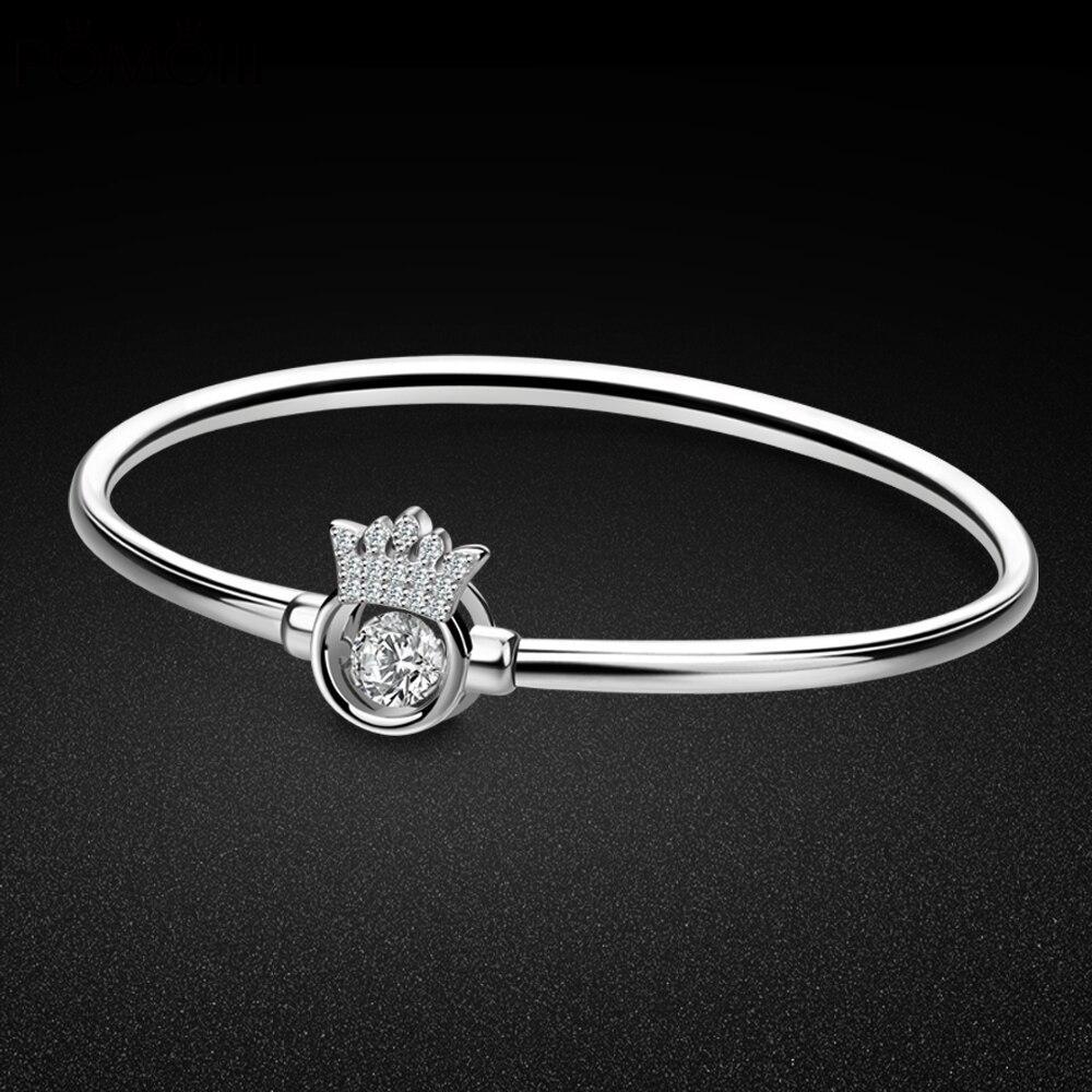100% серебряный браслет 925 пробы женский браслет с кубическим цирконием в форме короны ювелирные изделия открытый браслет бесплатная подарочная коробка