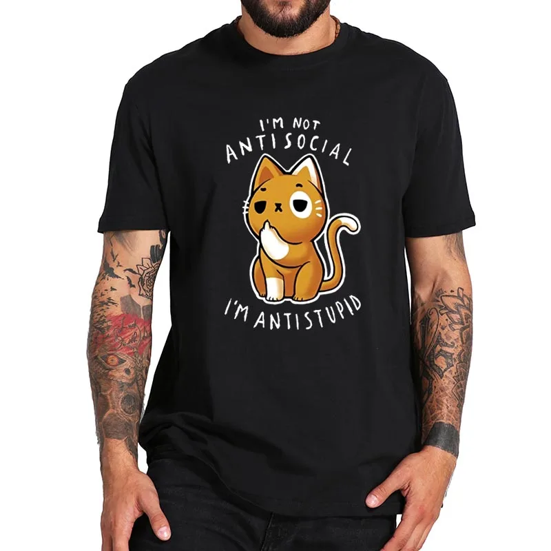 100% хлопок I'm Not Antisocial I'm antiглупая футболка крутая футболка с рисунком кошки футболки с коротким рукавом и круглым вырезом