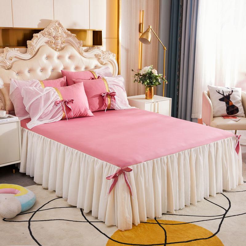 100% хлопчатобумажная ткань, кружевное покрывало принцессы, королевский размер, юбка-кровать с наволочкой, 1 юбка-кровать + 2 наволочки 3pcs Design180x200cm