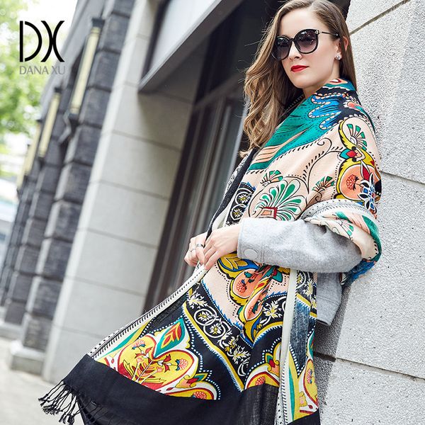 100% шерсть площади платках женщины elegant lady carf и теплая шаль long animal print палантины бандана шарф хиджаб пляж blanket y201007, Blue;gray