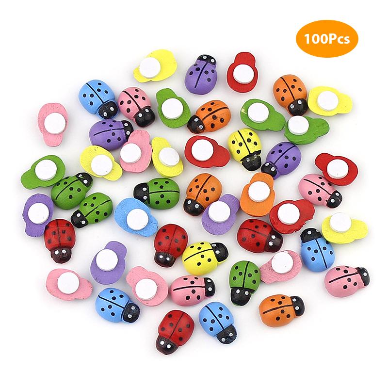 100 шт. Мини-деревянный жук Diy Handmade Craft Холодильник Наклейка на стену Домашний декор разноцветный