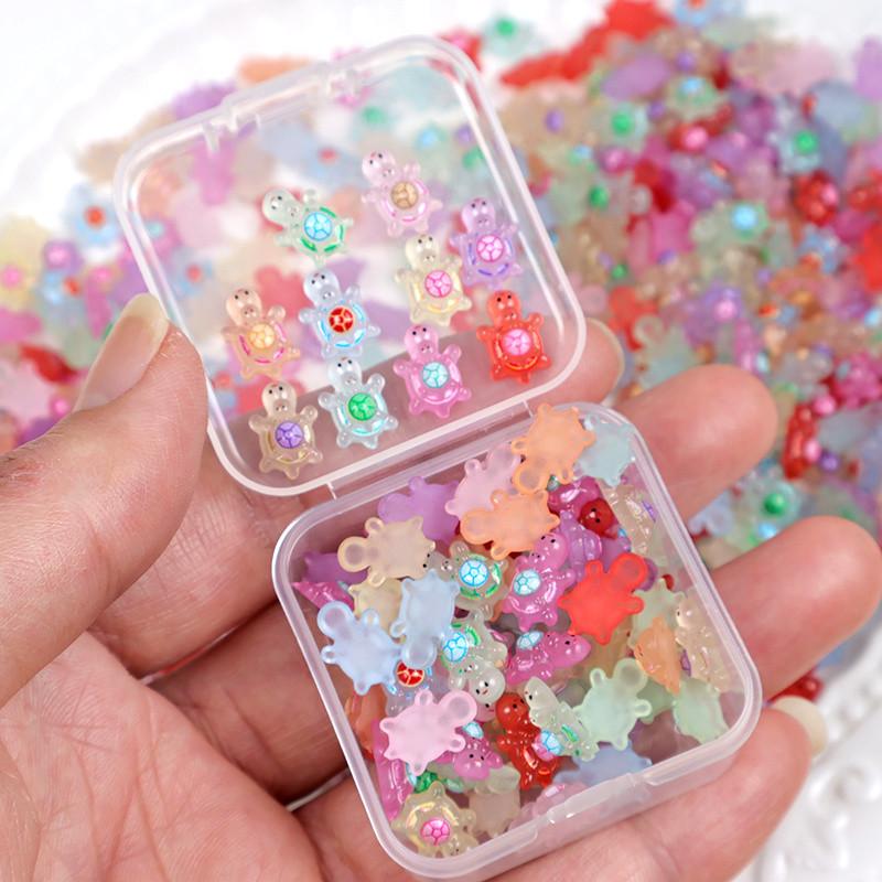 100 шт. Разноцветные Супер Мини Светящиеся Миниатюры Черепашек для Родителей и Детей Полимерные Украшения Украшение для Сказочного Сада Микроландшафт 0.8*1.2cm разноцветный