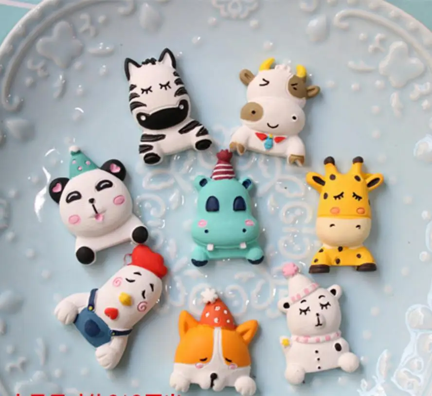 100 шт. кавайные фигурки ручной росписи из смолы с мультяшными животными в стиле хиппота и белого медведя с плоским основанием каменная фигурка для скрапбукинга DIY Декор домашние аксессуары