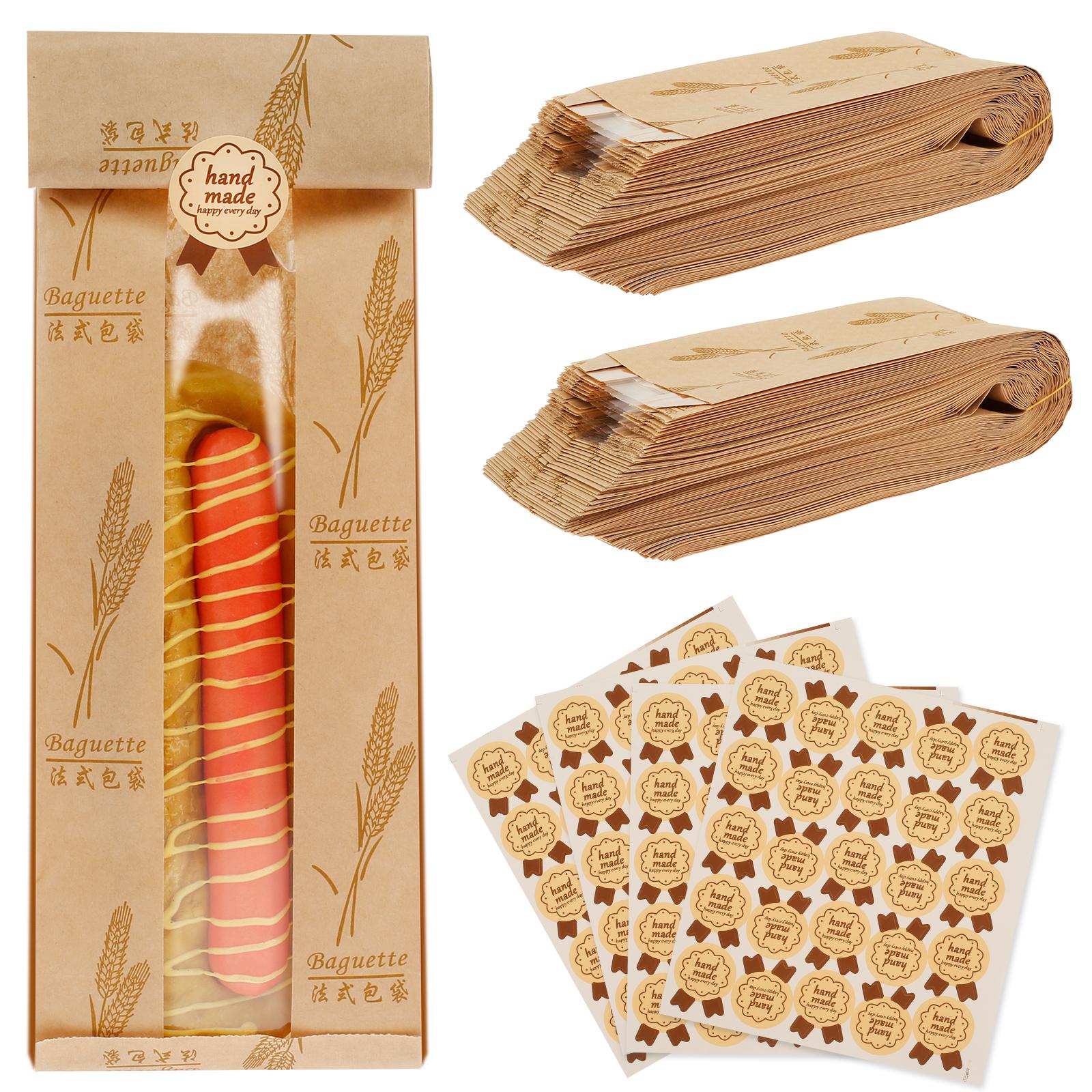 100 шт. крафт-бумажные пакеты для хлеба, самодельные пакеты для хранения багетов с запечатывающими наклейками, пакеты для закусок, печенья, выпечки, еды на вынос, новые