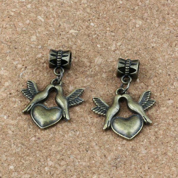 100 шт. / лот болтается античная бронзовая пара голубей сплава подвески большие отверстия бусины подходят европейские шарм браслет ювелирные, Bronze;silver