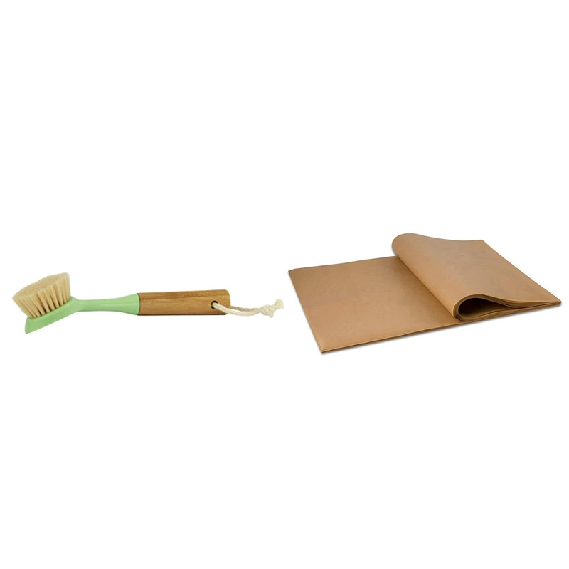 100 шт. неотбеленная бумага для пергамента, предварительно вырезанные листы для выпечки, бумага с 1 шт. натуральной бамбуковой щеткой для посу...