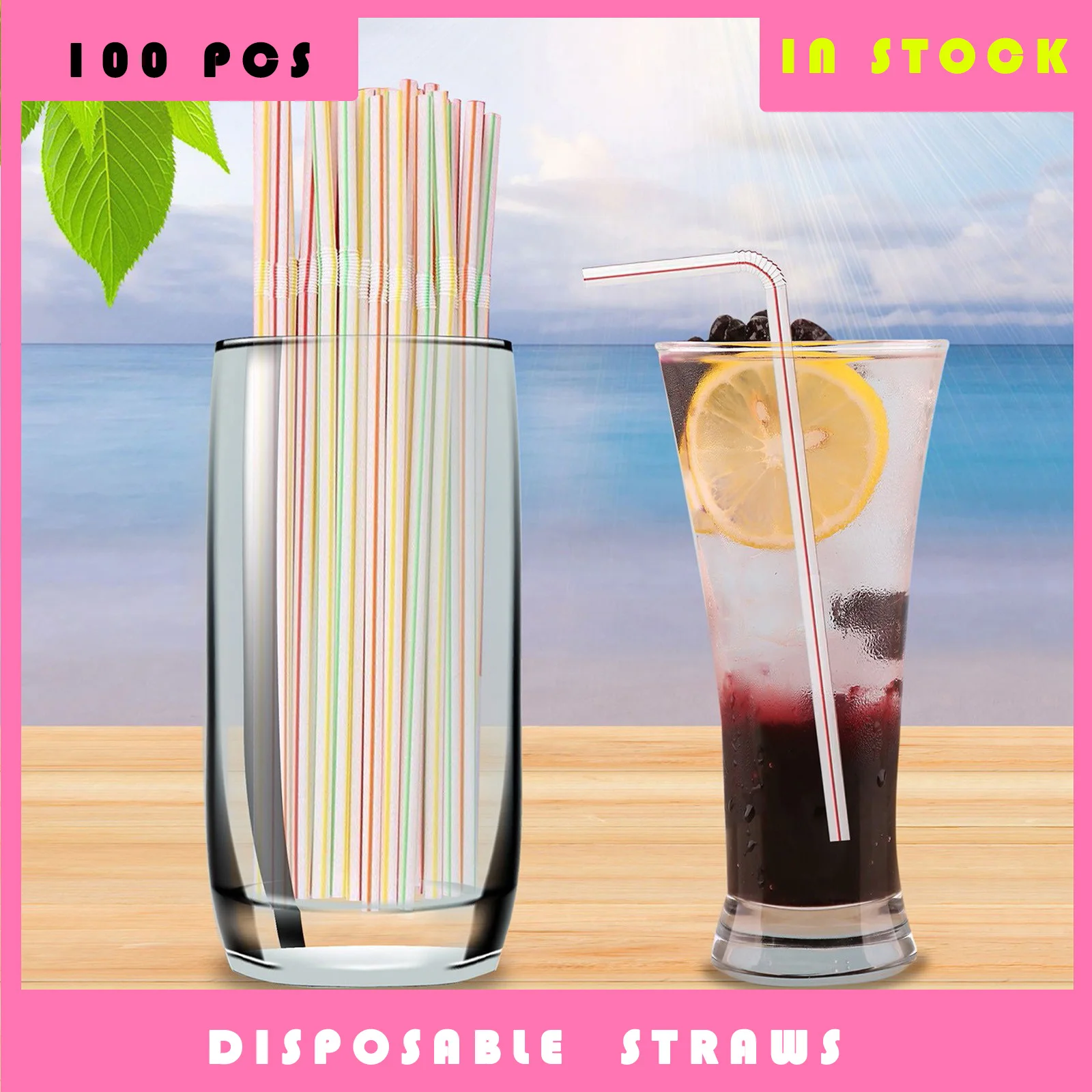 100 шт., одноразовые Разноцветные полосатые гибкие локоть для напитков