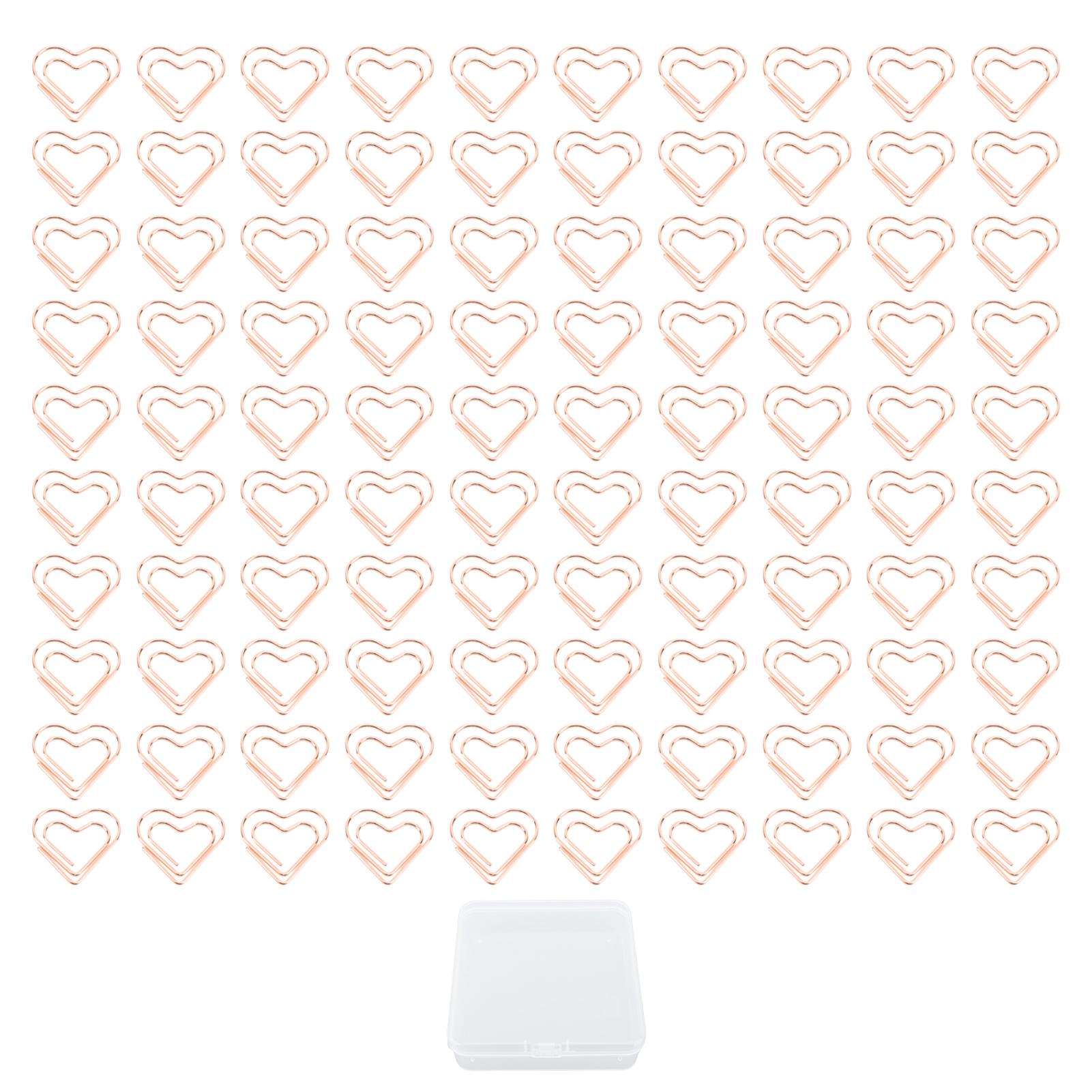 100 шт. скрепки в форме сердца, милые металлические скрепки, портативные очаровательные маленькие скрепки для документов Rose Gold Heart Shape