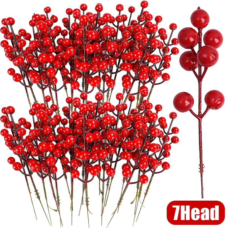 100/5 шт. Рождественские искусственные красные ягоды, украшение на стебель, красные ягоды падуба, искусственные цветы, растения для новогодней вечеринки, домашний декор 5PCS