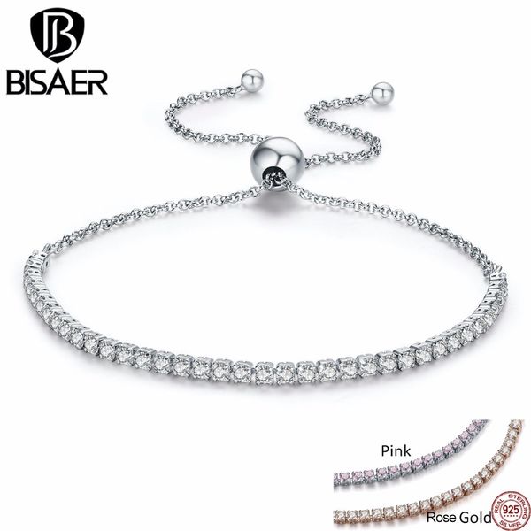 100% 925 sterling silver clearly cz, lace-up adjustable tennis strand bracelets for women authentic bracelet jewelry gift ecb029, Golden;silver