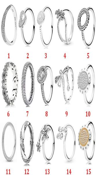 100 925 sterling silver fit pandora ring dragonfly ring blossom four leaves bright halo jewelry engagement lovers fa2168024, Slivery;golden