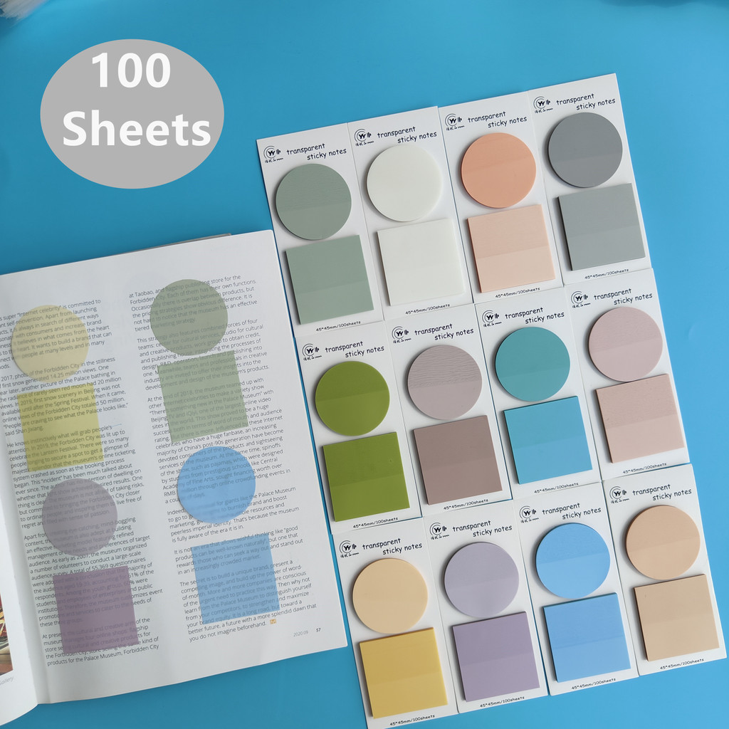 100 Sheets Transparent Sticky Notes Self-Adhesive Annotation Books Notepad Bookmarks Memo Pad Index Tabs Stationery