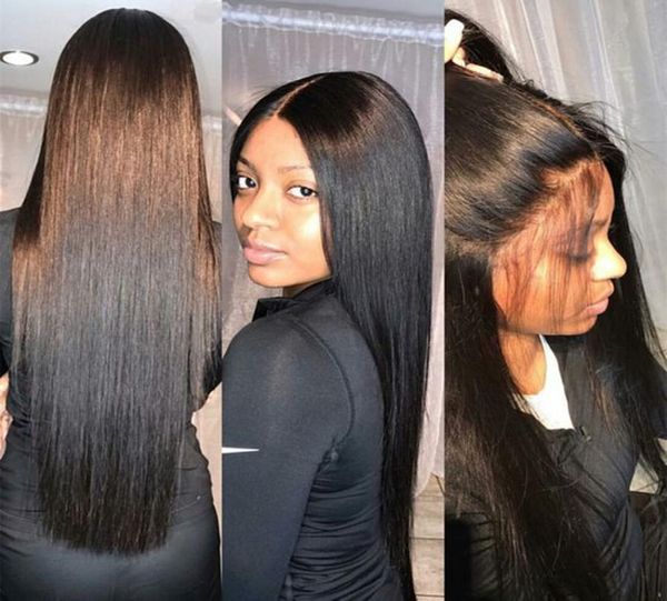 100 brazilian virign remy human hair straight african american glueless full lace wig front lace wig8560416, Black