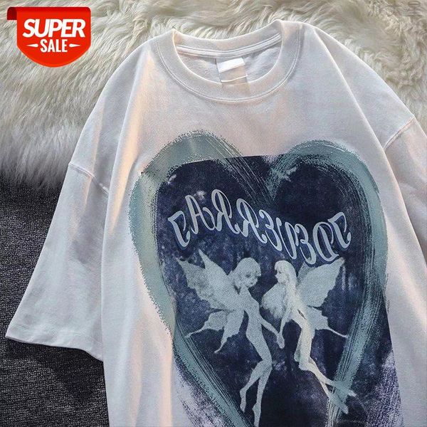 100% pure cotton national tide oversize short-sleeved t-shirt niche high street hip-hop half-sleeved male couple brand ins #jm7d, White;black