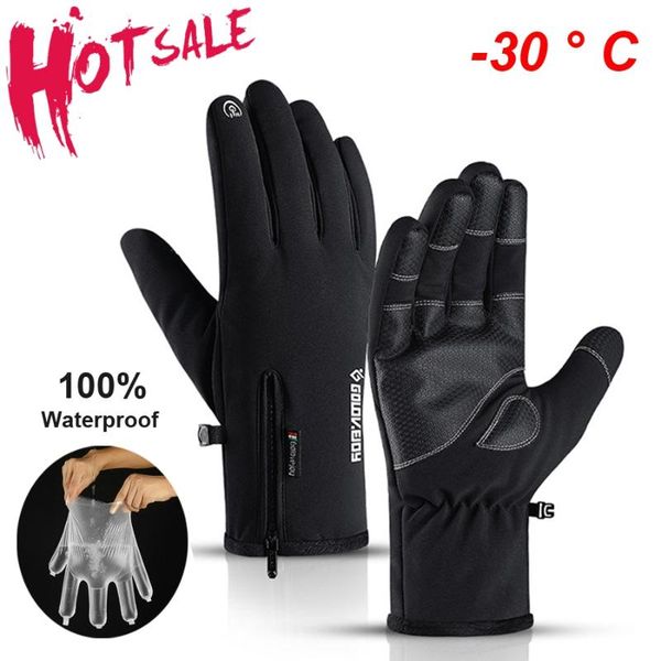 100% waterproof winter cycling gloves windproof outdoor sport ski for bike bicycle scooter motorcycle warm glove, Black