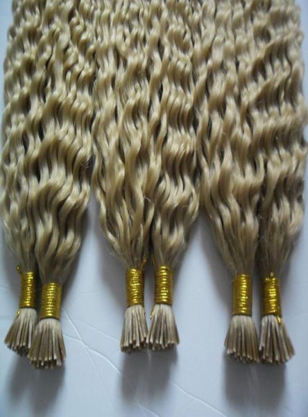 100gstrands 3 bundles remy hair extensions keratin i tip hair extensions blonde brazilian kinky curly human hair extensions kerat4348284, Black