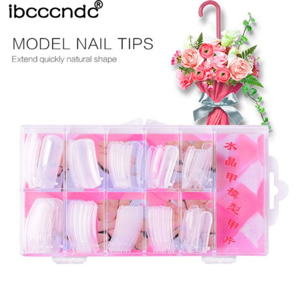 100pc/set jelly poly gel false nail tips model form for full cover uv gel acrylic nail art mold fake nails extension transparent, Red;gold