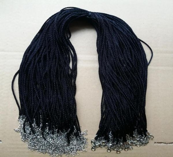 100pcs black satin silk necklace cord 20mm18039039 with 2039039 extension chain leadnickel 7144144, White;red