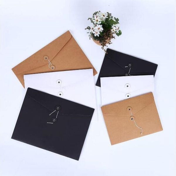 100pcs/lot brown kraft paper a5/a4 document holder file storage bag pocket envelope with string lock office supply pouch gift wrap