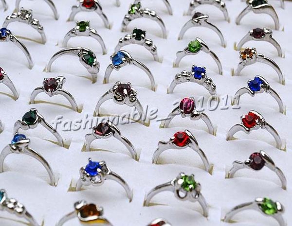 100pcslot cz crystal rhinestone silver p rings fashion alloy rings mix design r1928907705, Golden;silver