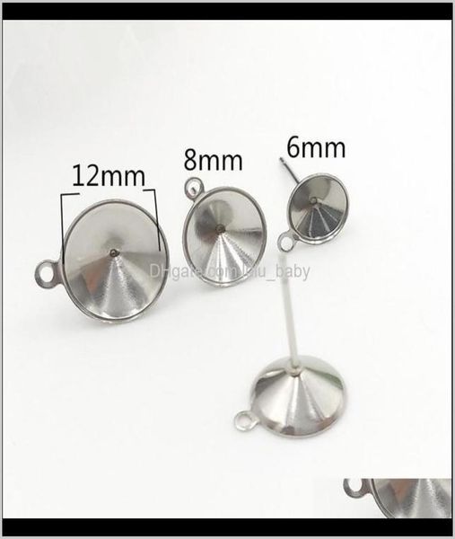 100pcslot stainless steel stud findings with circle bezel rivoli stones cabochons bases post diy crafts lx2t9 jewelry rydxx4429845, Slivery;crystal