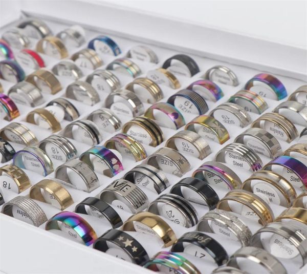 100pcslot trendy stainless steel rings for women men whole mixed wedding jewelry gift couple accessories finger ring anillo4173720, Golden;silver