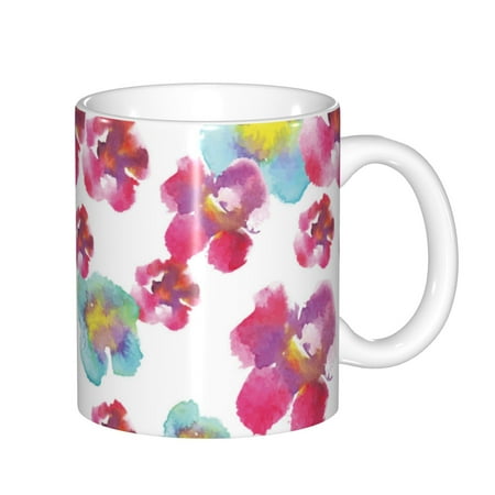 Yiaed Watercolor Flowers Print Ceramics Coffee Large Handle Design Extra Large Tea and Coffee Cup for Office and Home Mugs
