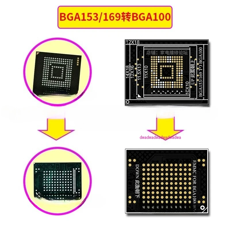 10PCS BGA153 to BGA100 Adapter Board BGA169 Adapter Sticker Car Navigation EMMC Chip Conversion Small Board