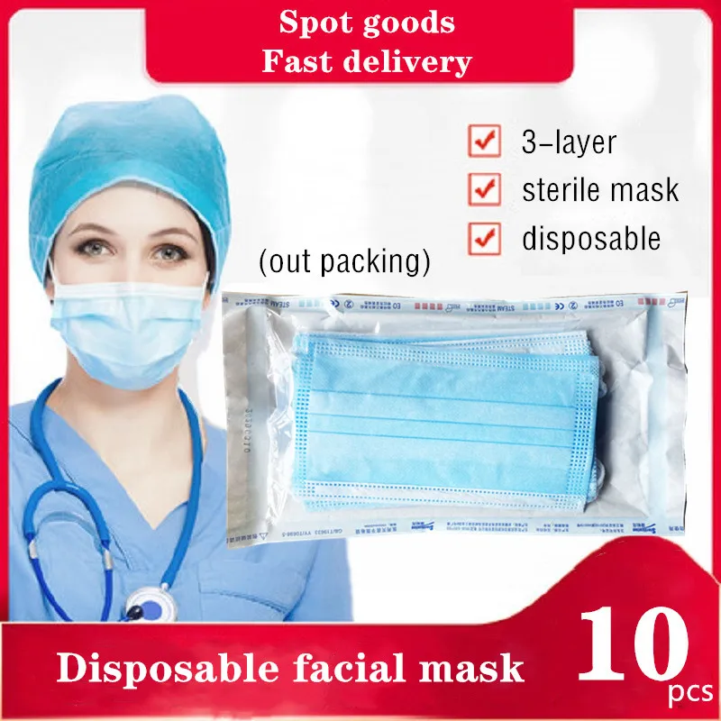 10Pcs Particle Facial Mask Anti-mist Mask 3-Layer Protection Disposable Masks For Helth Care Paramedics Personal Protection