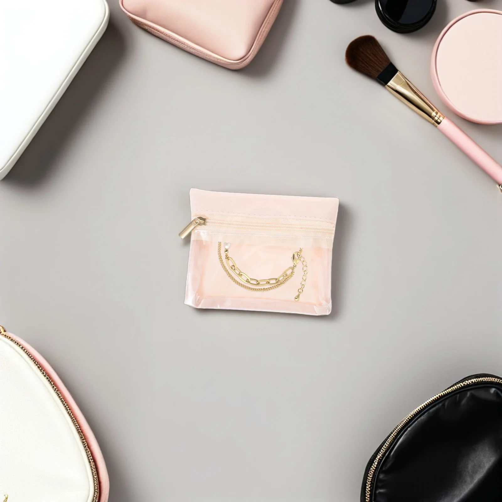 10Pcs Portable Jewelry Organizer Bags with Multiple Zip Pockets Compact Case for Travel Home Use Clear Window Design Holds Rings